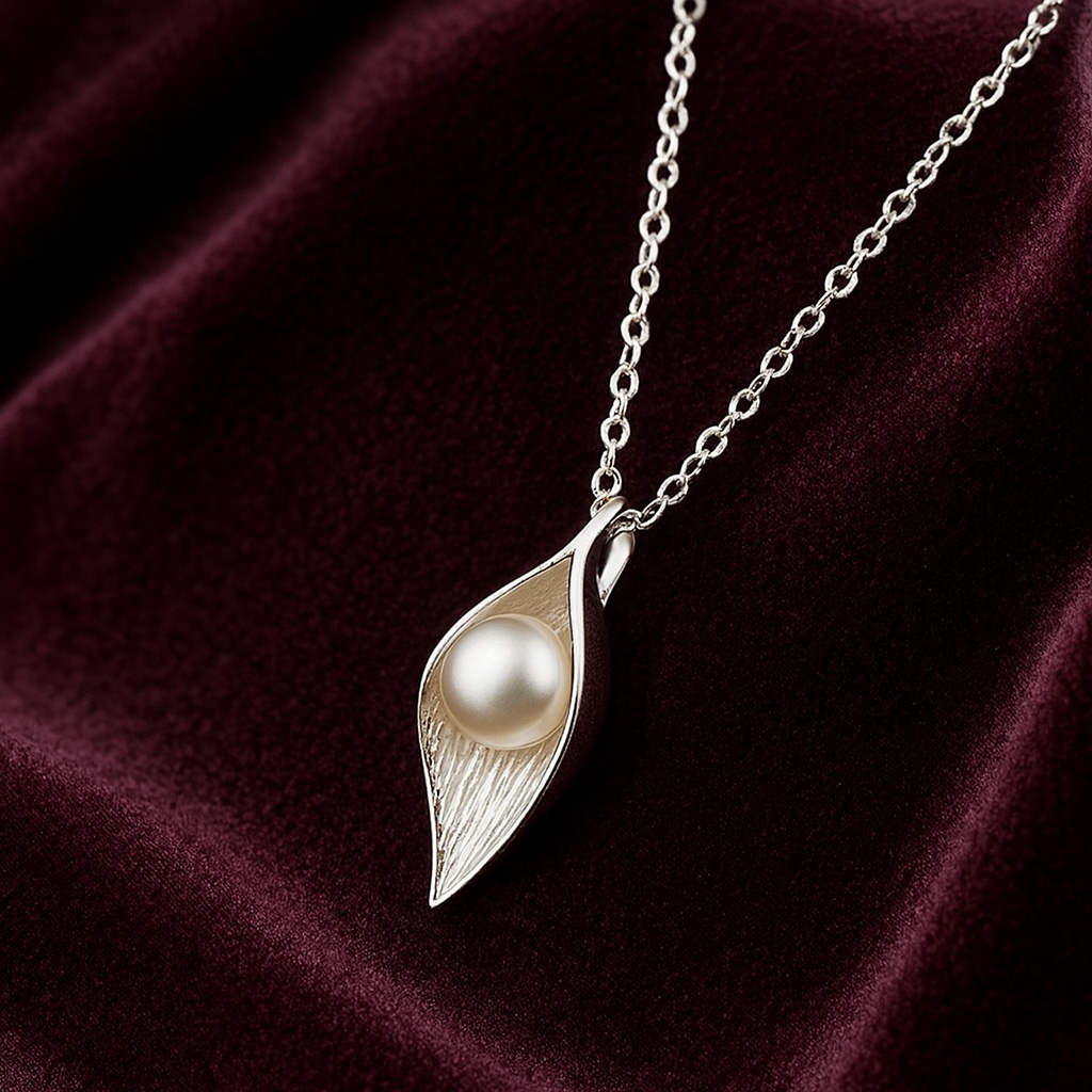 925 Sterling Silver Pearl Leaf Pendant Necklace for Women & Girls