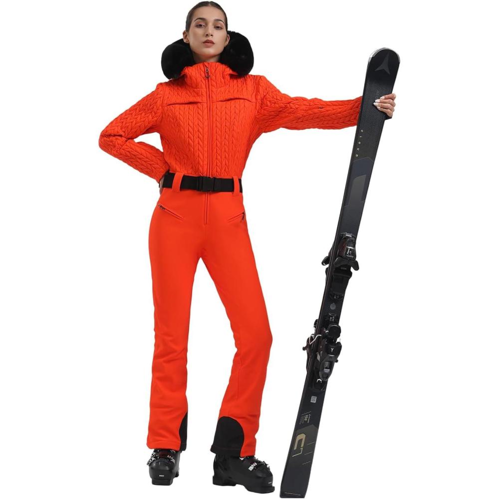 GSOU SNOW Ski Suit Women Snowsuit Slim One Piece Jumpsuit Snow Jackets Waterproof Winter Windproof Outdoor Sports Warm(All Orange)