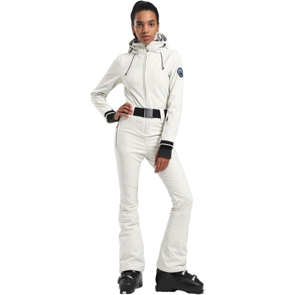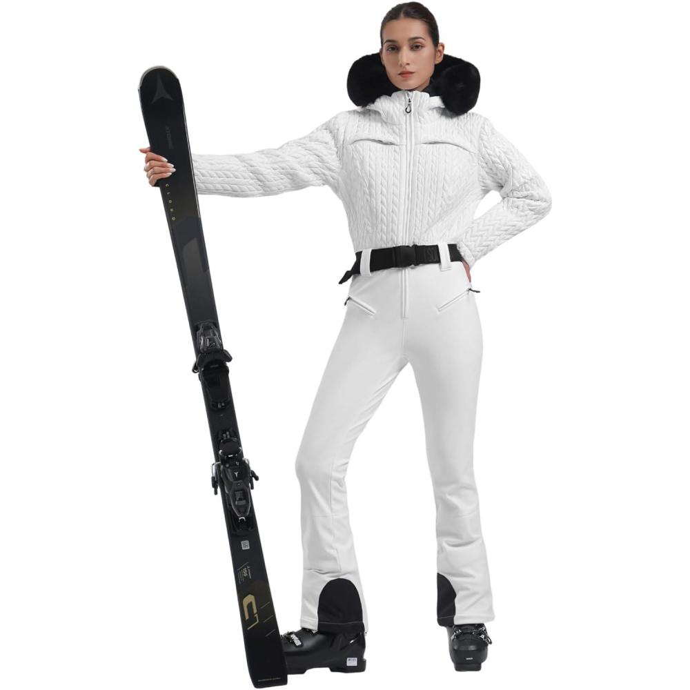 GSOU SNOW Ski Suit Women Snowsuit Slim One Piece Jumpsuit Snow Jackets Waterproof Winter Windproof Outdoor Sports Warm(All White)