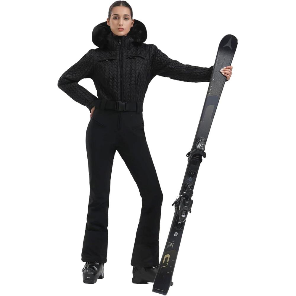 GSOU SNOW Ski Suit Women Snowsuit Slim One Piece Jumpsuit Snow Jackets Waterproof Winter Windproof Outdoor Sports Warm(All Black)