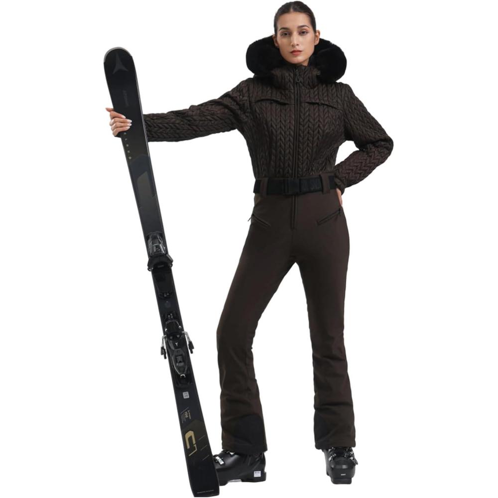 GSOU SNOW Ski Suit Women Snowsuit Slim One Piece Jumpsuit Snow Jackets Waterproof Winter Windproof Outdoor Sports Warm(Coffee)
