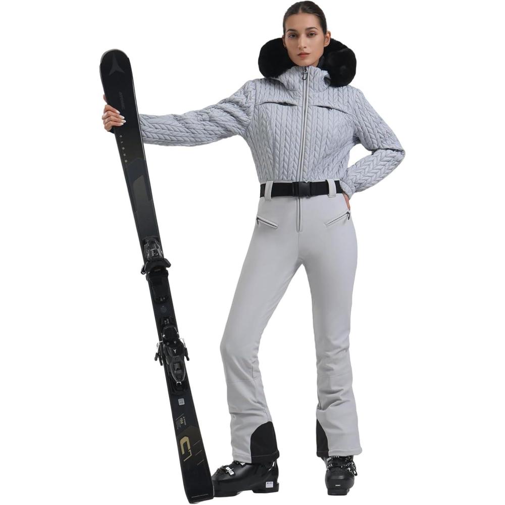 GSOU SNOW Ski Suit Women Snowsuit Slim One Piece Jumpsuit Snow Jackets Waterproof Winter Windproof Outdoor Sports Warm(Grey)