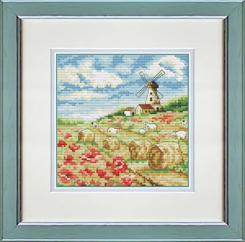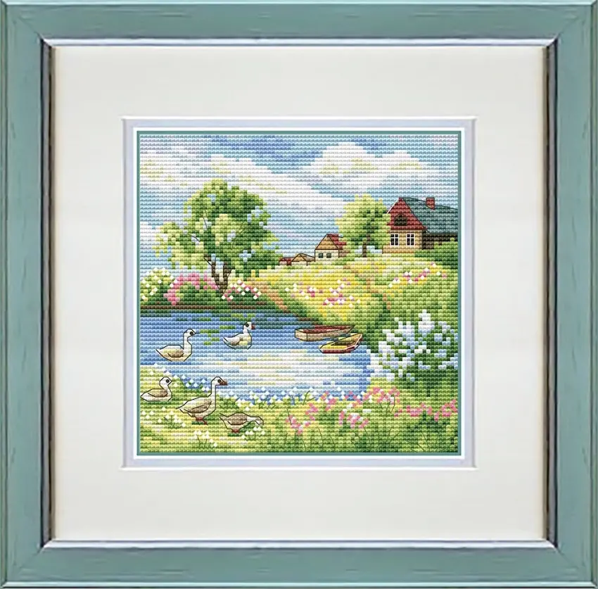 Cross stitch kit Summer in the village 13x13cm Aida 16ct embroidery needlepoint kit