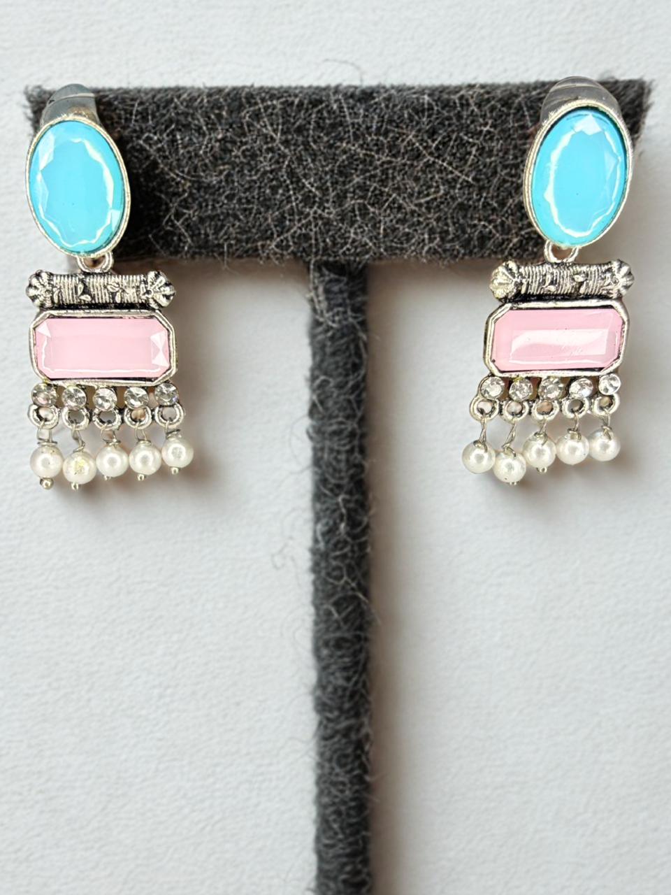 Dual-Tone Pastel & Pearl Jhoomar Earrings