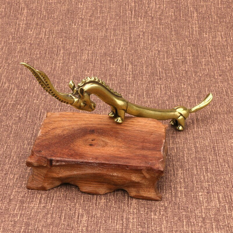 Solid Brass Antelope Figurine Goat Dragon Kettle Fork Miniature Tea Pet Ornament EDC Tools & Brass Collectibles