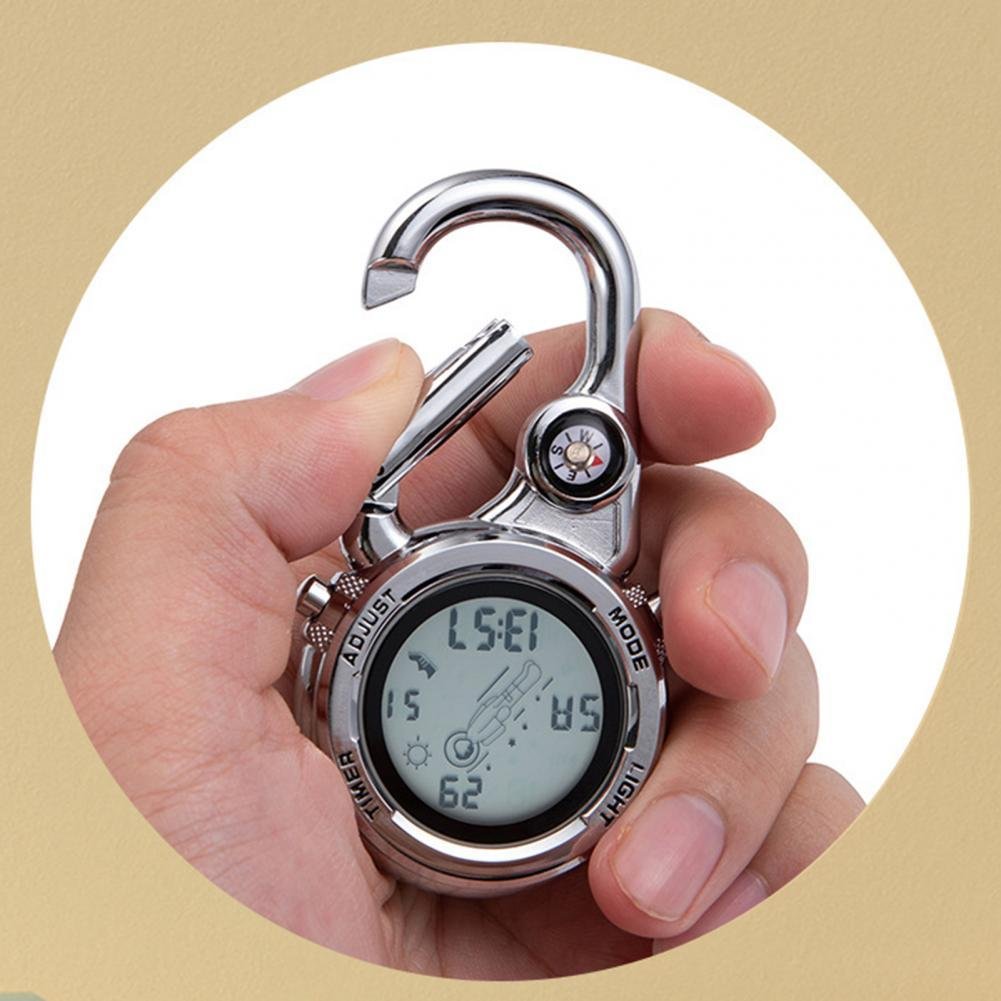 Digital Carabiner Pocket Watch Anti-oxidation Anti-scratch Backpack Belt Pocket Clip Outdoor Sports Camping Multi-function Watch EDC Everyday Carry Accessories Tools