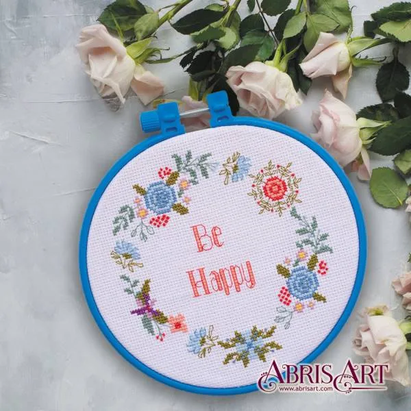 Mini Cross stitch kit – Be Happy 15x15cm White Aida 14ct needlepoint kit
