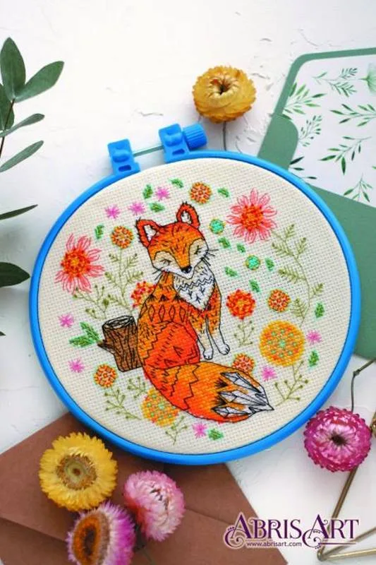 Mini Cross stitch kit – Chanterelle 15x15cm White Aida 14ct needlepoint kit