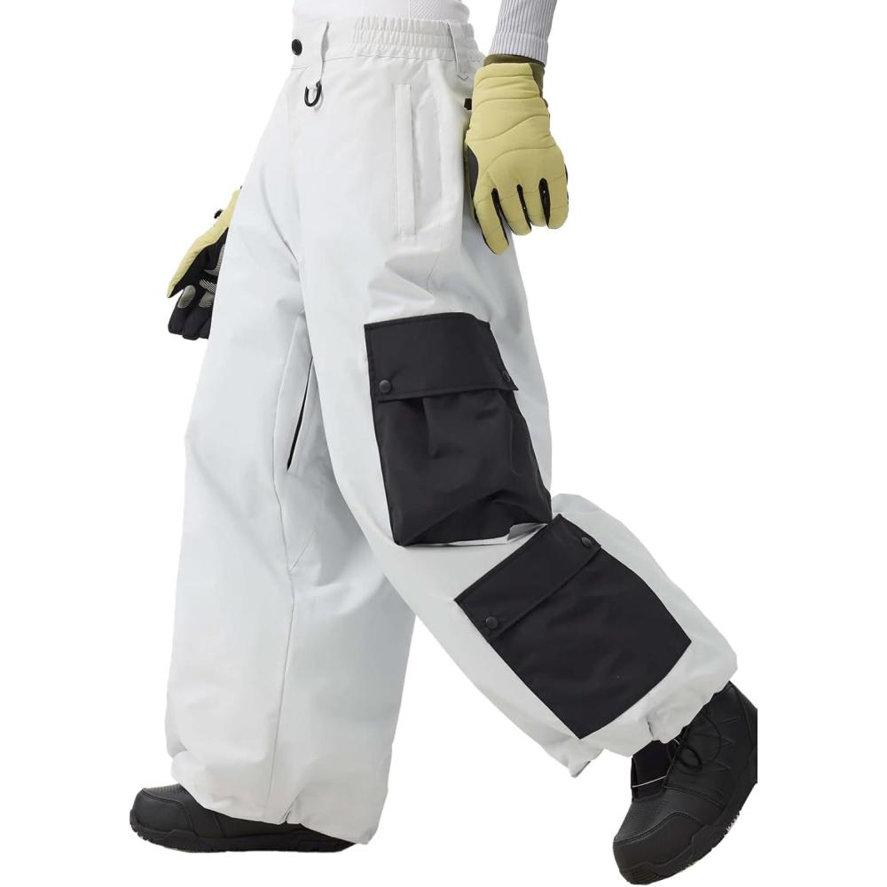 GSOU SNOW Women Men Ski Pants Snowboard Pants Super Baggy Snowboarding Loose Snow Sport Insulation Waterproof Windproof(Beige Black)