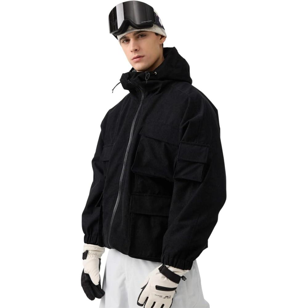 GSOU SNOW Mens Snowboard Jacket Baggy Womens Ski Jackets Cargo Snow Coat Waterproof Windproof Warm Multi-Pockets Sports(Black)