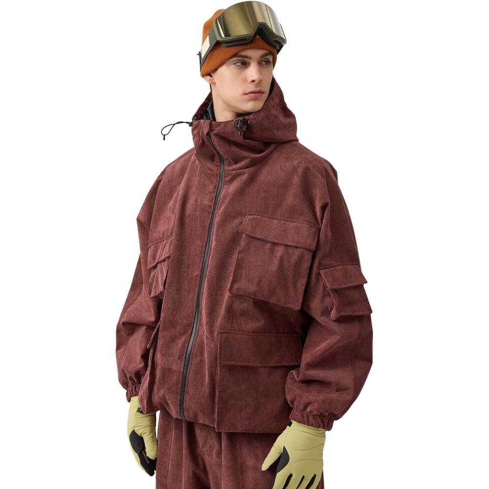 GSOU SNOW Mens Snowboard Jacket Baggy Womens Ski Jackets Cargo Snow Coat Waterproof Windproof Warm Multi-Pockets Sports(Burgundy)