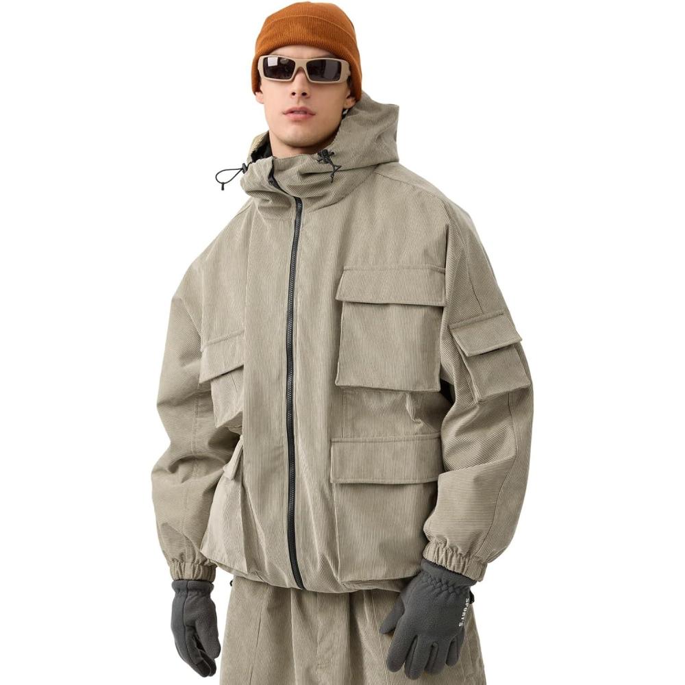 GSOU SNOW Mens Snowboard Jacket Baggy Womens Ski Jackets Cargo Snow Coat Waterproof Windproof Warm Multi-Pockets Sports(Khaki)