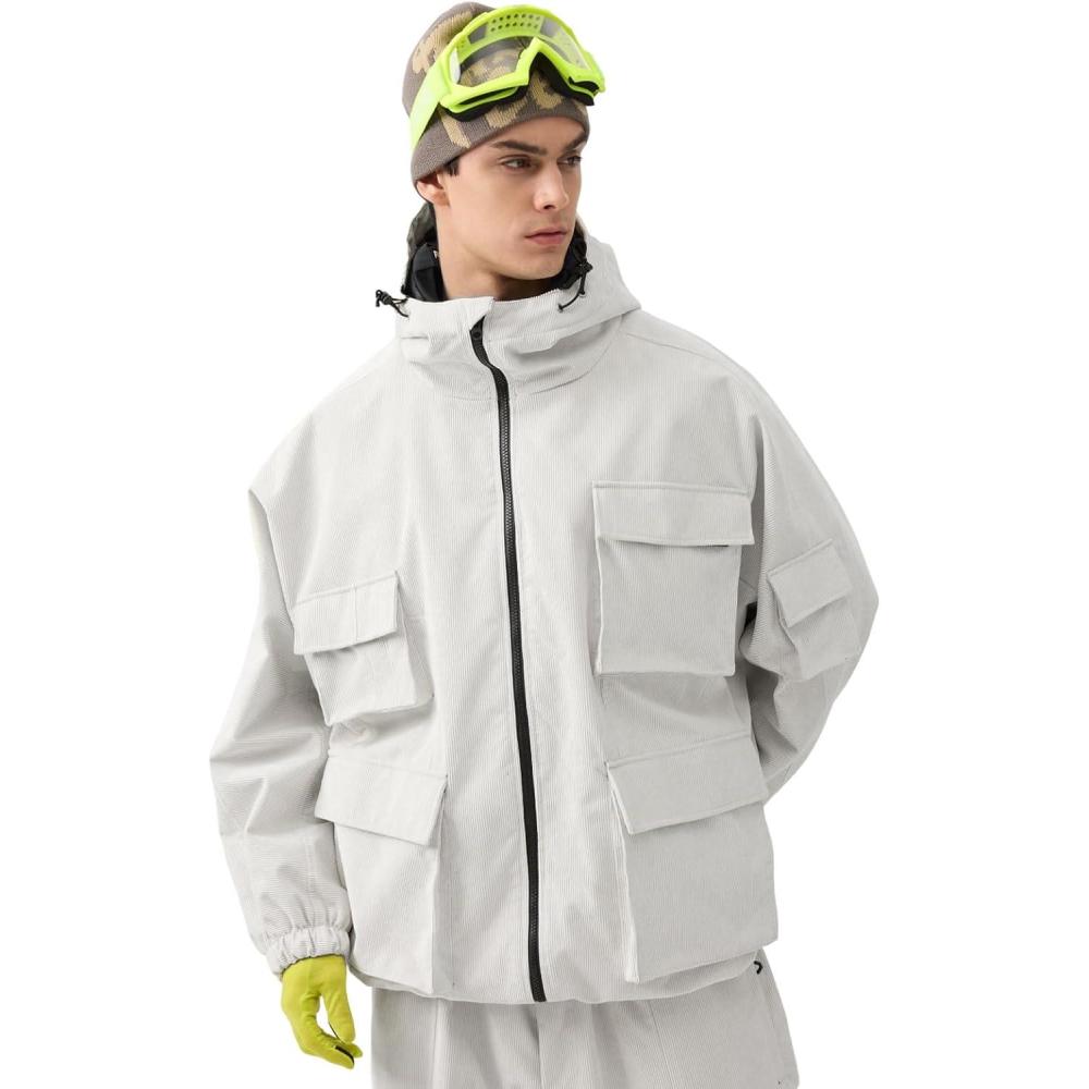 GSOU SNOW Mens Snowboard Jacket Baggy Womens Ski Jackets Cargo Snow Coat Waterproof Windproof Warm Multi-Pockets Sports(White)