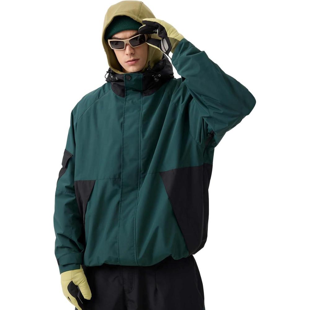 GSOU SNOW Mens Womens Ski Jacket Baggy Snowboard Coat Waterproof Shell Jacket Snow Hoodie Loose Fit For Winter Outdoor Sports(Army Green)