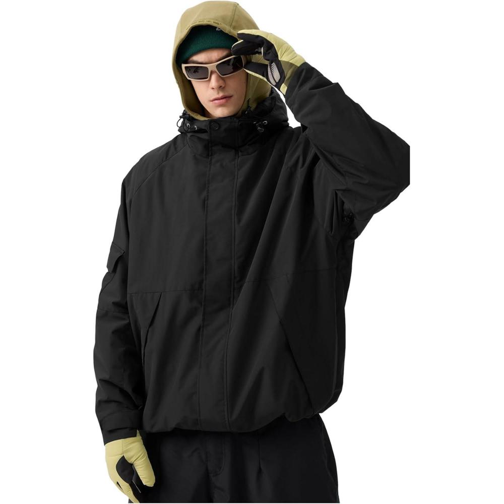 GSOU SNOW Mens Womens Ski Jacket Baggy Snowboard Coat Waterproof Shell Jacket Snow Hoodie Loose Fit For Winter Outdoor Sports(Black)