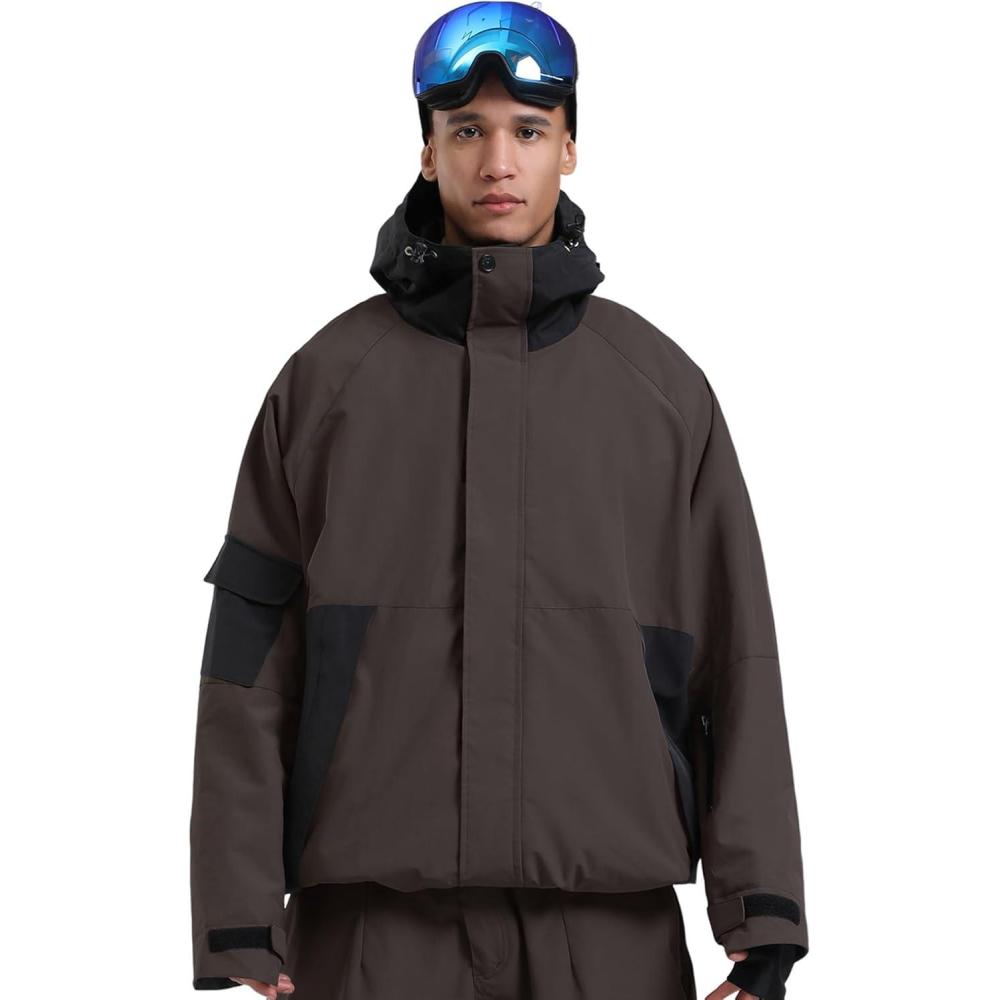 GSOU SNOW Mens Womens Ski Jacket Baggy Snowboard Coat Waterproof Shell Jacket Snow Hoodie Loose Fit For Winter Outdoor Sports(Coffee)