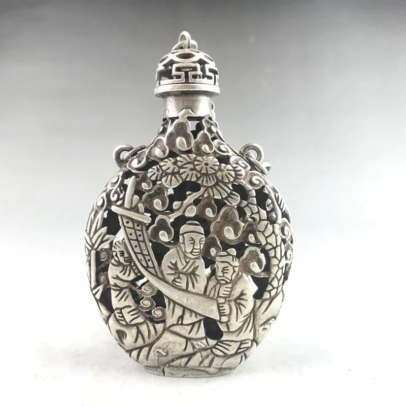 Pure Tibetan Silver Collectible Snuff Bottle Hand-Carved Old Statue Tea Pet EDC Tools & Brass Collectibles