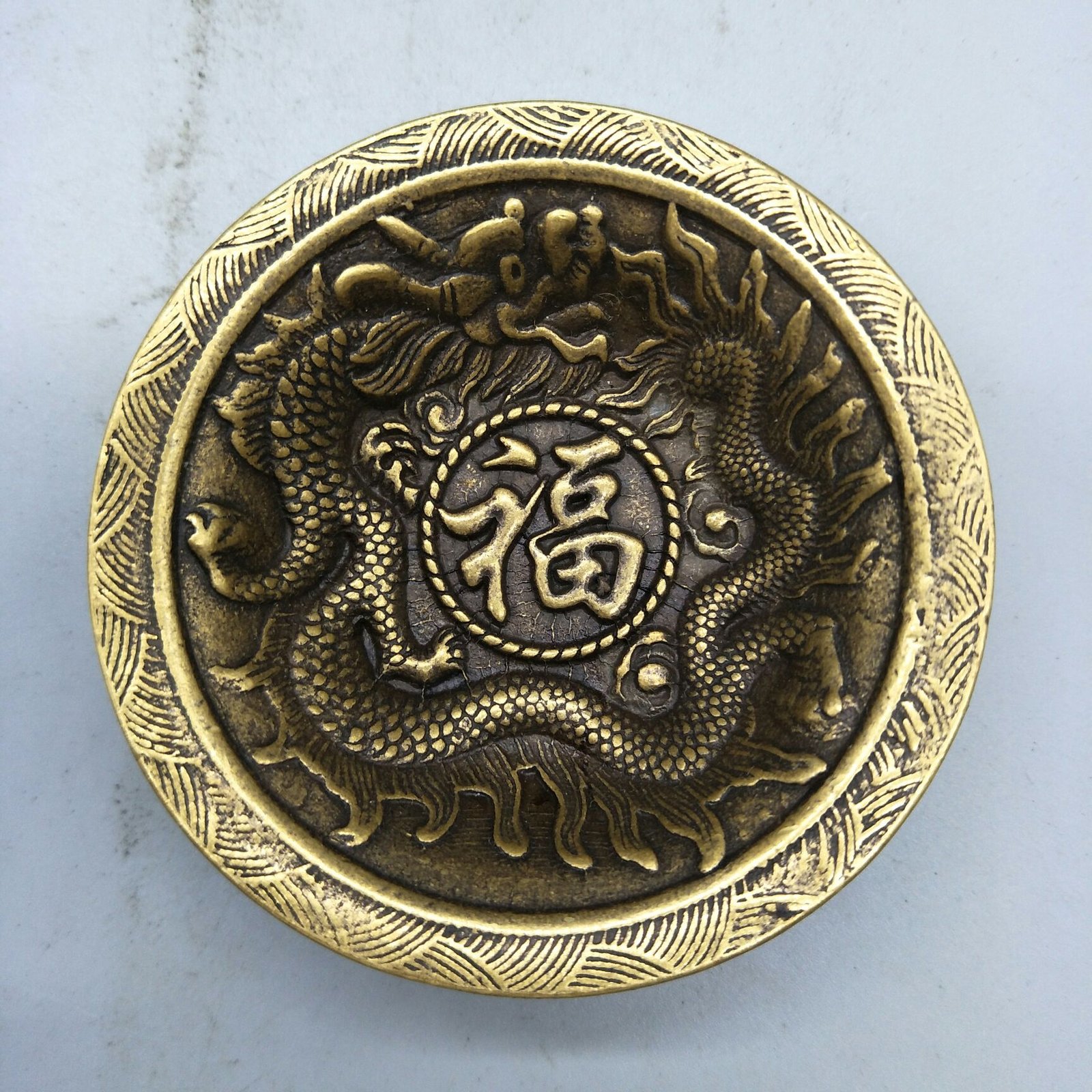 Pure Brass Engrave Propitious Dragon Fu Character Bowl Metal Crafts Ornament EDC Tools & Brass Collectibles