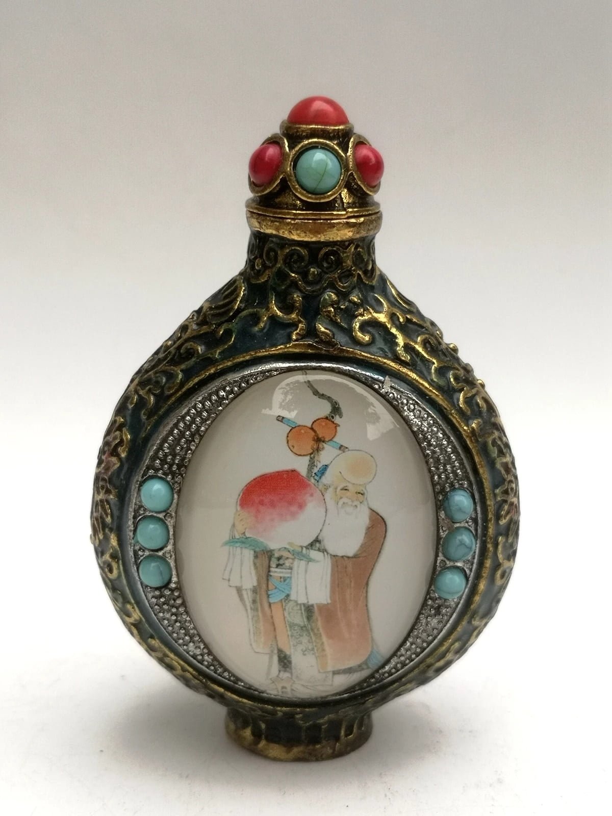 Collection Cloisonne Bronze Carving Inlay God Of longevity Wealth Snuff Bottle EDC Tools & Brass Collectibles