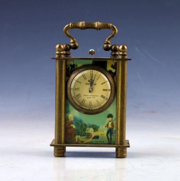 Copper Statue Collectible Old Cloisonne Handwork Mechanical Table Clock EDC Tools & Brass Collectibles