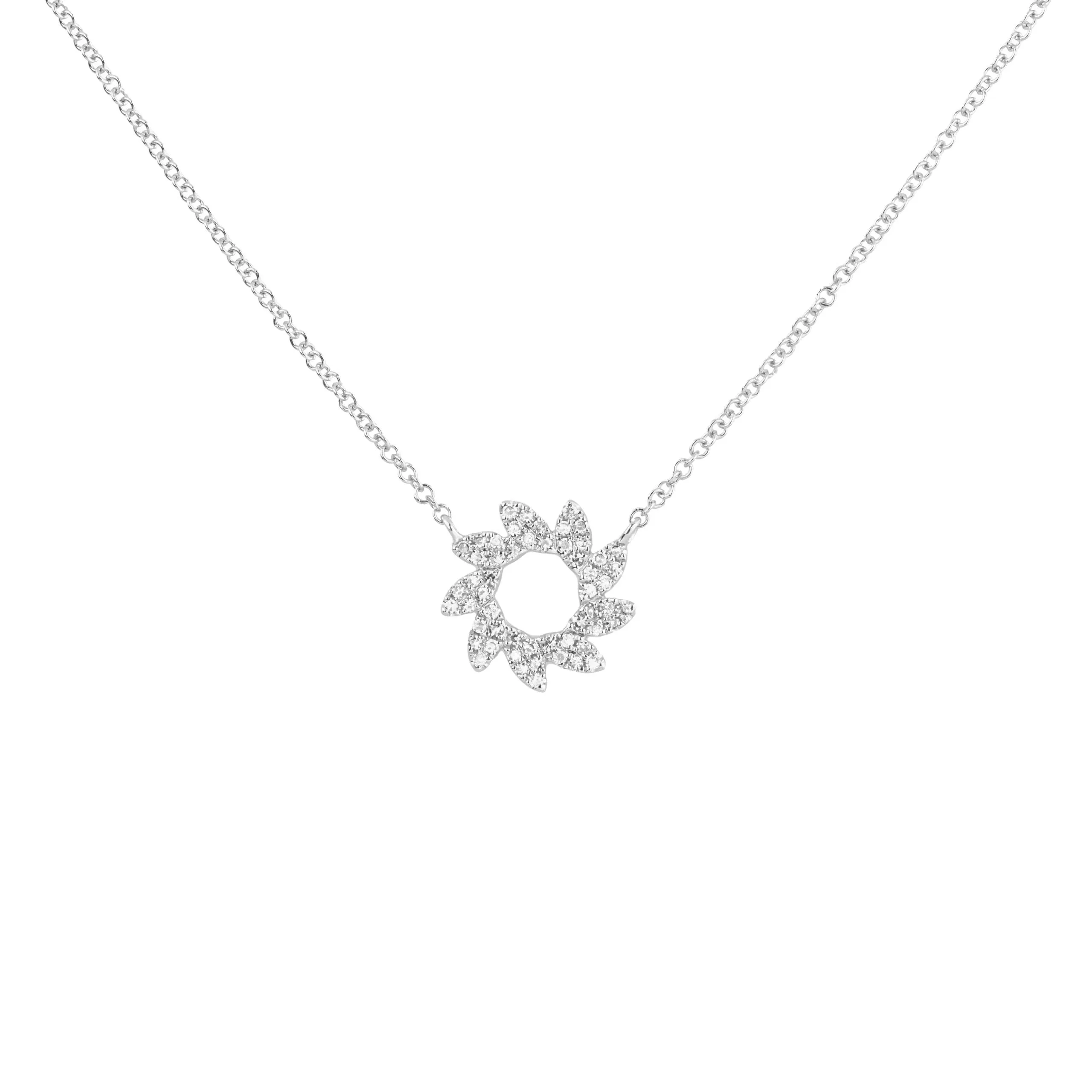Tiesh White Gold Diamond Petal Necklace