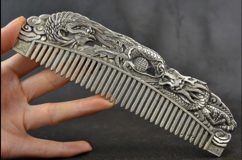 Handwork Tibet Silver Carving Dragon Hair Tool Comb Old Decoration Collectible EDC Tools & Brass Collectibles