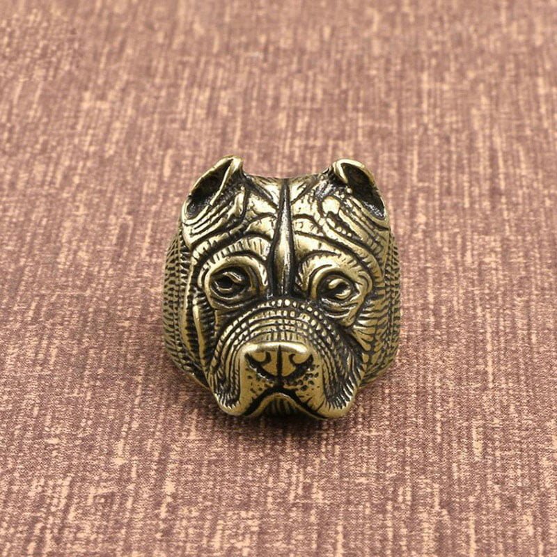Brass French Bulldog Head Ring Jewelry Adjustable Tea Pet Miniature Ornament EDC Tools & Brass Collectibles