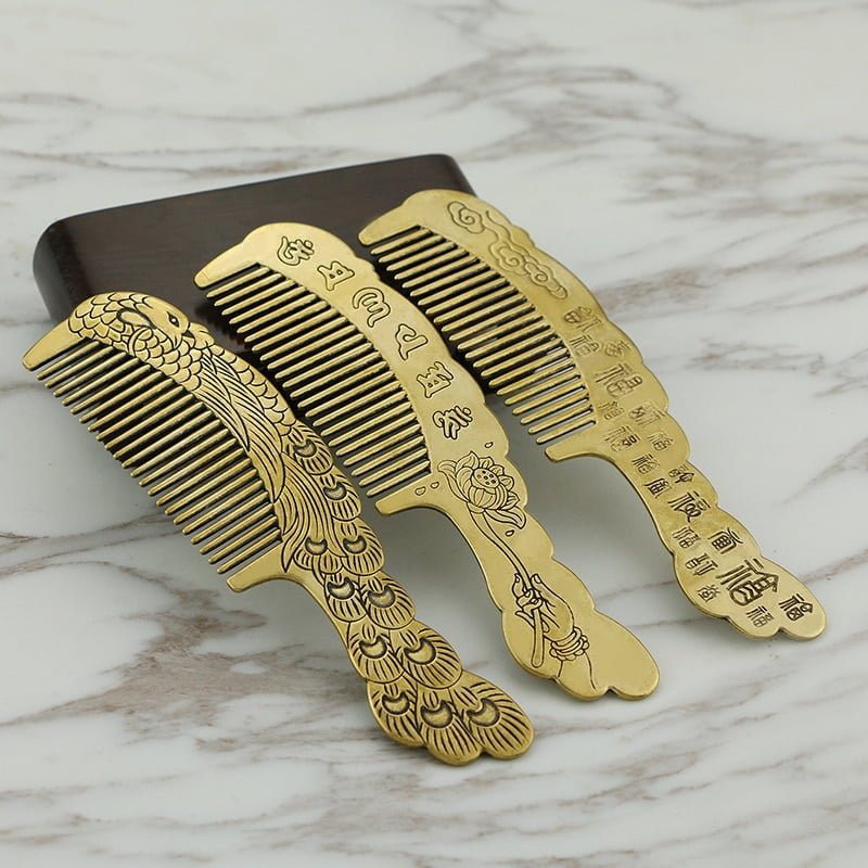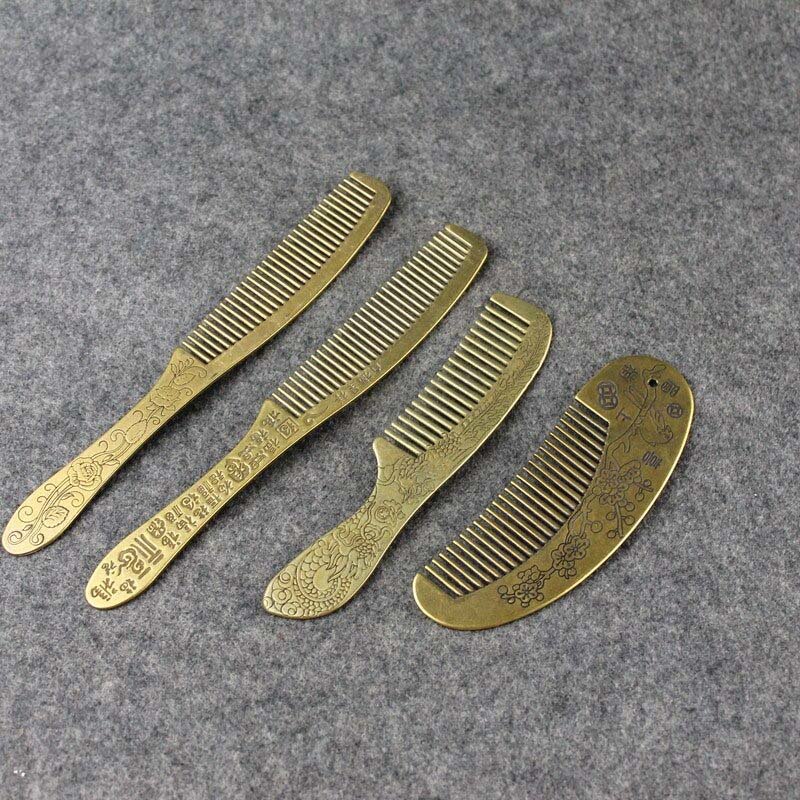 Pure Brass Guanyin Xinjing Fine-Tooth Hairdressing Comb Straight Hair Comb Hair Styling Saloon Tool Handmade Craft Unique Gifts Collectibles Ornament Miniature