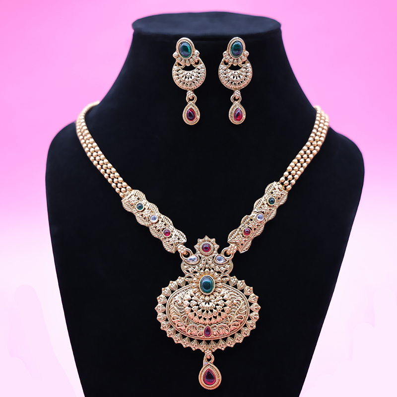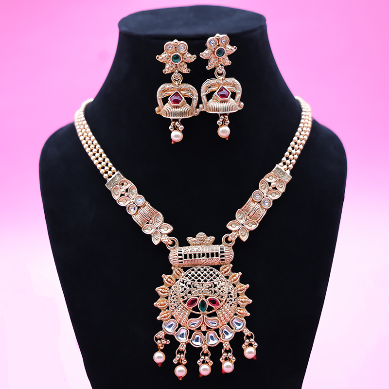 Elegant American Diamond Necklace Set with Pink Pendant and Drop Earrings