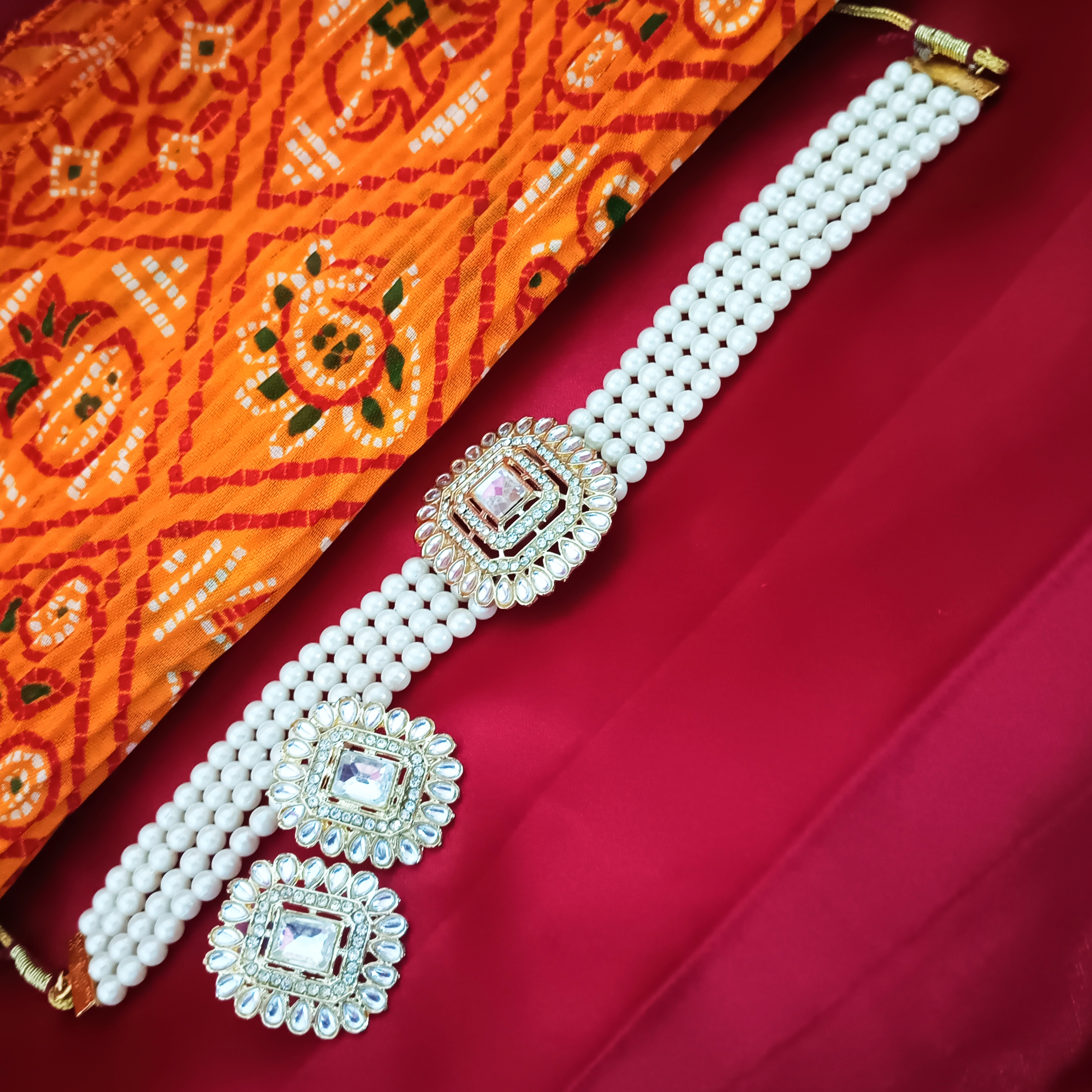 Beaded Choker with Kundan Pendant and Beautiful Studs